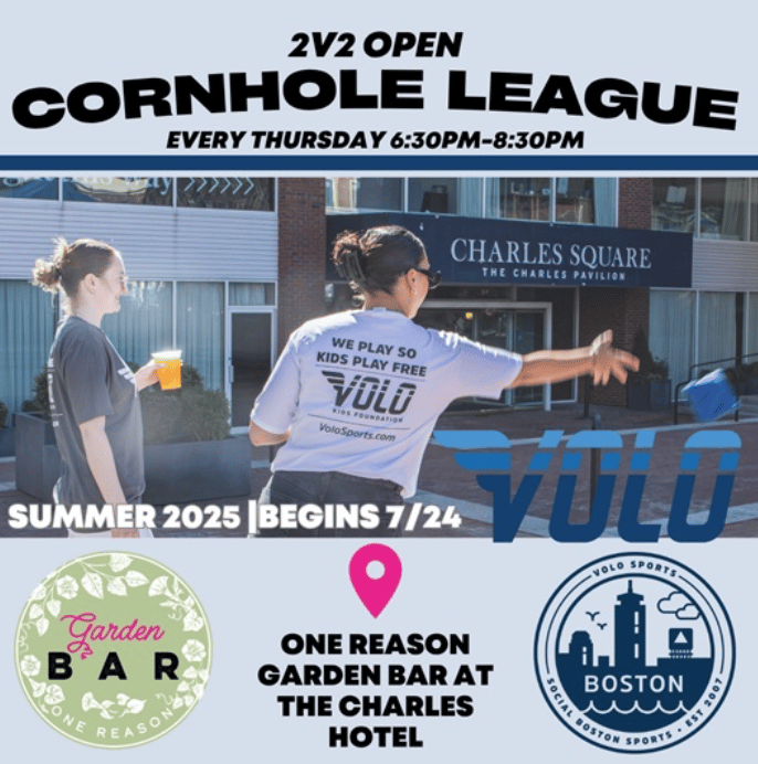 🎯 Weekly Thursday night cornhole league in the courtyard of The Charles Hotel with a fun, casual competition vibe perfect for after-work hangs