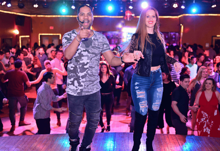 90% bachata and 10% salsa, creating a fun mix that feels like a house party with a social vibe; $15 dance/lesson, $10 dance only