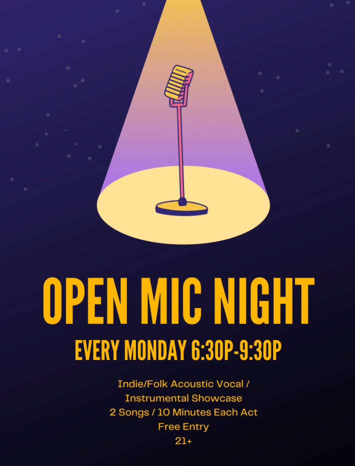 Every Monday the Cantab flips its downstairs room into a full open-mic setup, laying out the stage, lights, and sign-up list as singers, poets, comics, and storytellers cycle through new pieces, short sets, and experiments, with a steady crowd filtering in all night | FREE, 8pm–11pm